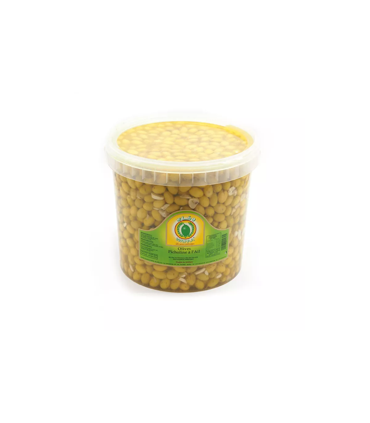 Entdecken Sie das Safaa-Oliven - gebrochene Picholines mit KnoblauchEin überlegenes Produkt ist in verfügbar Eimer von 8kgEntwickelt, speziell für die Anforderungen von Gastronomie, Caterern, Caterern und feinen Lebensmittelgeschäften. Diese in den sonnigen Regionen Marokko kultivierten Picholin-Oliven sind sorgfältig ausgewählt aus der Ernte Um optimale Frische und Geschmack zu gewährleisten.