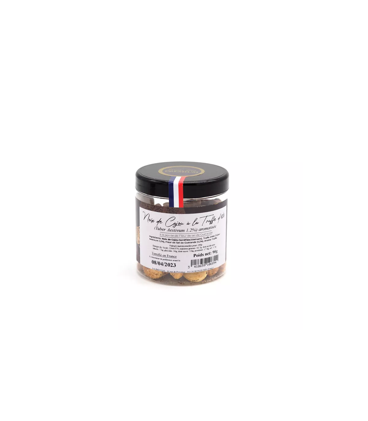 Ingredients: Cashew nut, summer truffle (tuber aestivum), truffle aroma, fleur de salt de Guérande.