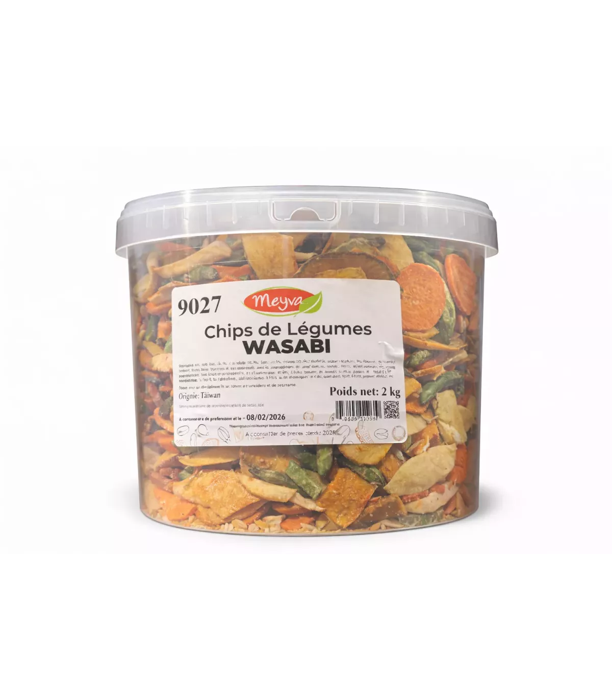 Bucket Meyva - Vegetable Chips in Wasabi In BTOB format, a unique product combining the crunchy vegetables with the aromatic power of Wasabi. In PALIMEX DRY FUITSWe carefully select exceptional products to meet the needs of professionals wishing to offer healthy and tasty snacks. This bucket of 2 kg is perfect for retailers, fine grocery stores, bars, and restaurateurs looking for an original and spicy nibbling option.