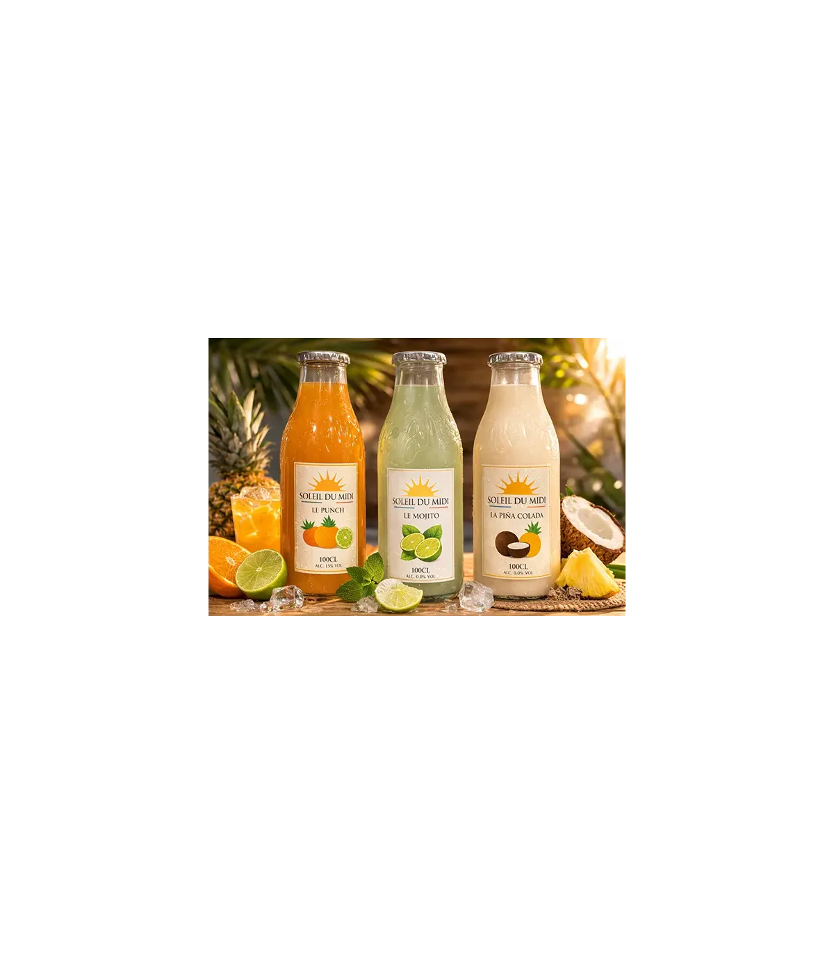 Découvrez notre Piña Colada sans alcool Soleil du Midi, un mocktail onctueux et exotique inspiré du célèbre cocktail tropical. Cette boisson associe la douceur de l’ananas et de la noix de coco pour recréer toute la gourmandise de la piña colada, sans alcool.